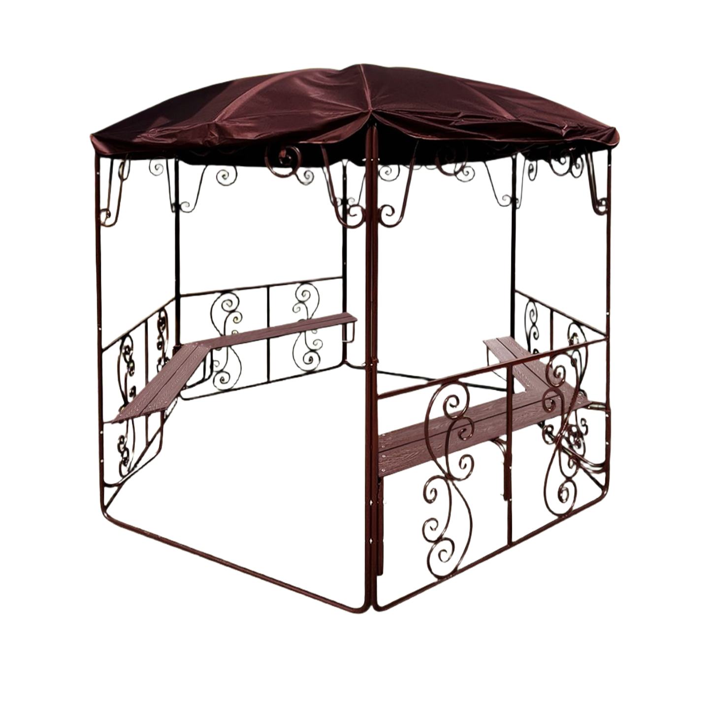 Цвет тента – коричневый. Тент является защитой от дождя и летнего палящего солнца.