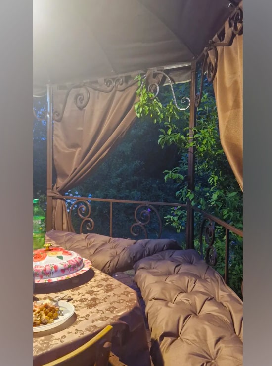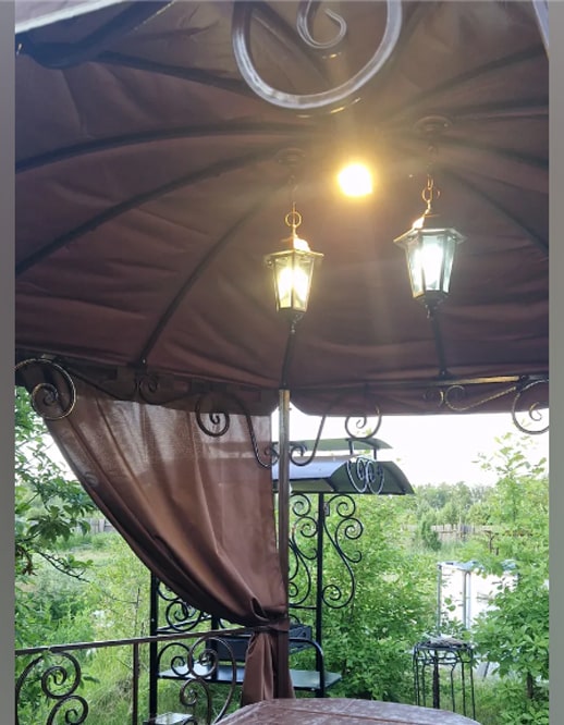 Вы спокойно сможете отдохнуть, устроить утреннее чаепитие или вечернее застолье (при желании беседку самостоятельно можно дополнить освещением).