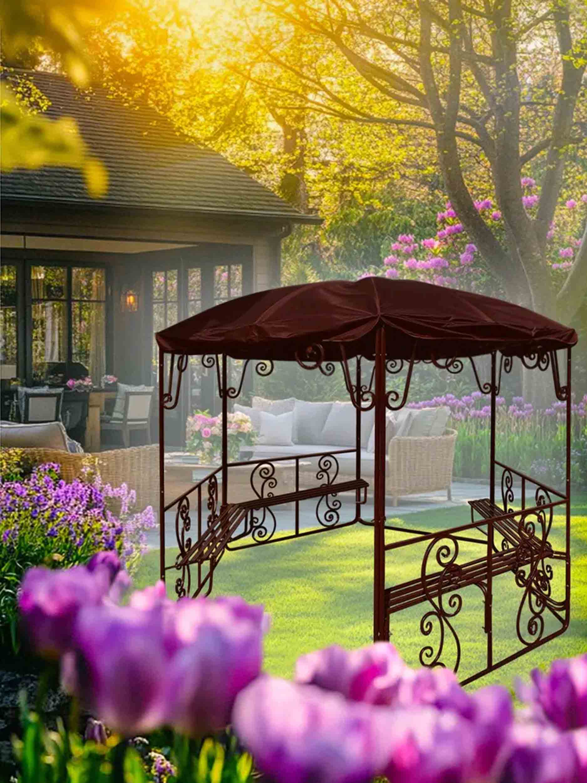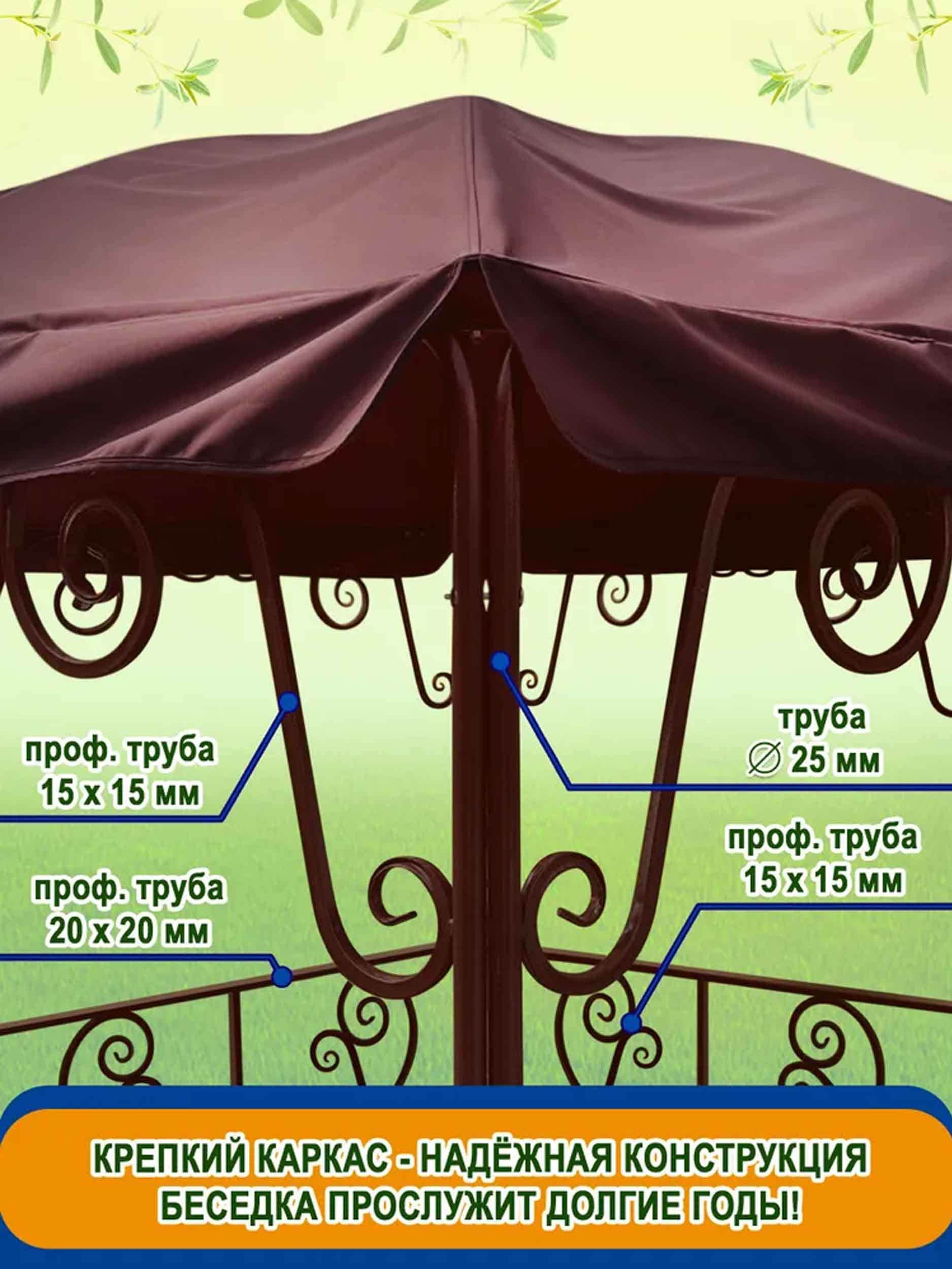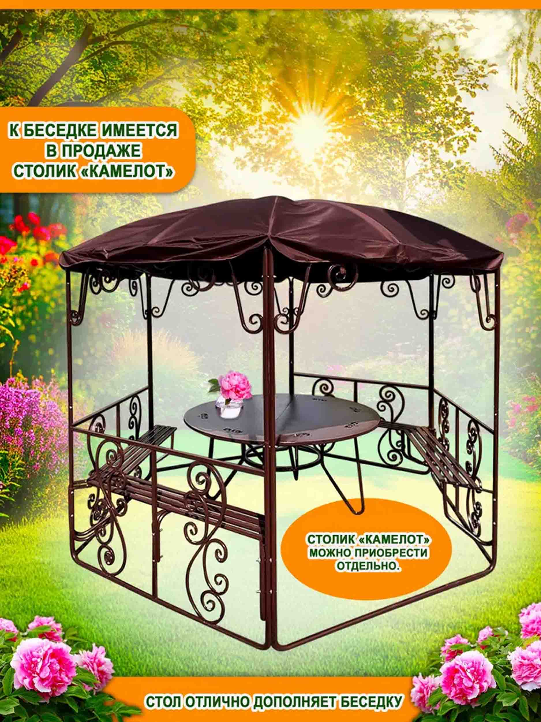 Эта беседка изготовлена из металла, что обеспечивает долговечность изделия.