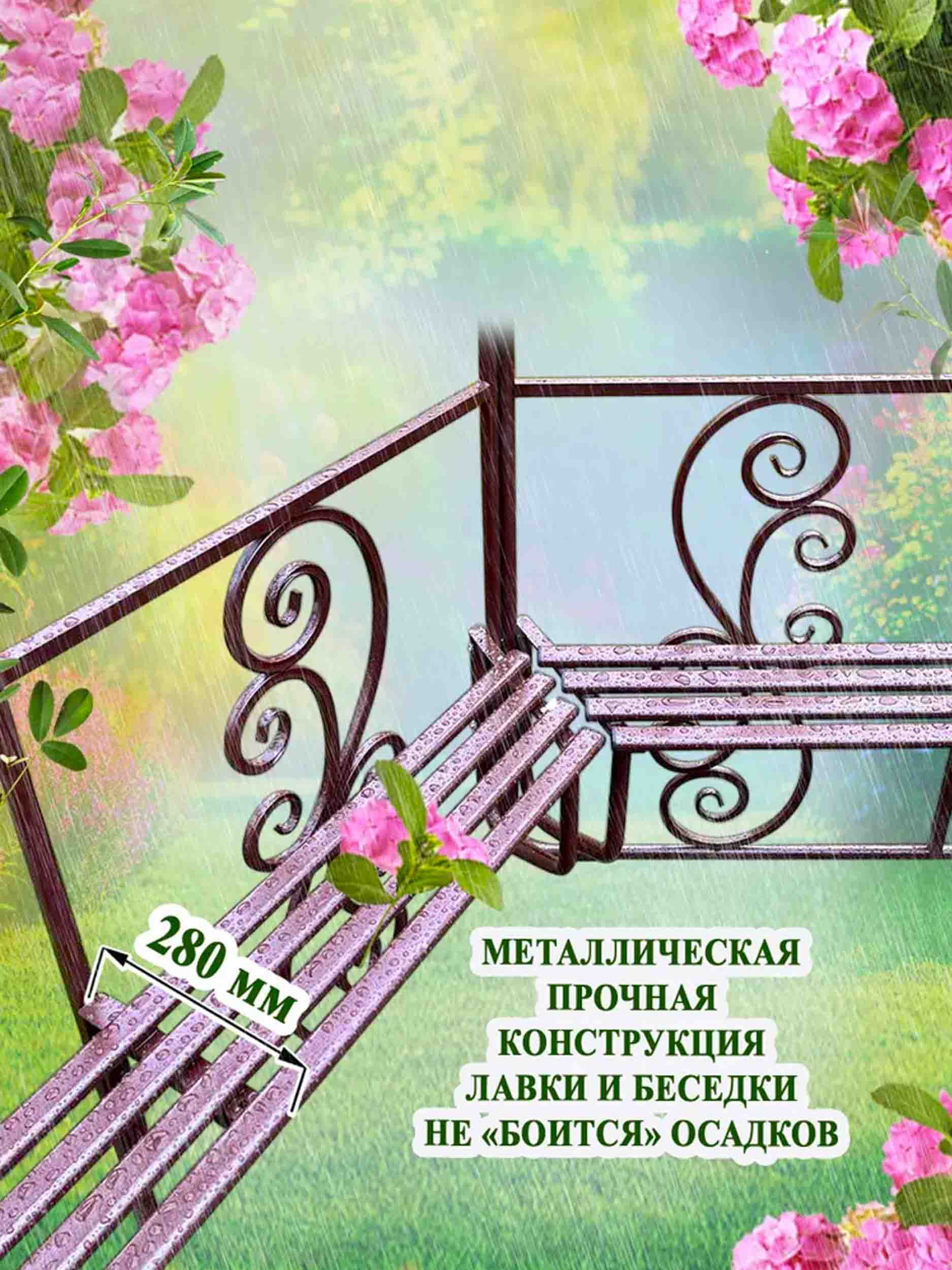 Лавочки долговечны и осадки совсем не помеха. Поверх лавки из металла можно положить подушечки для более комфортного отдыха!