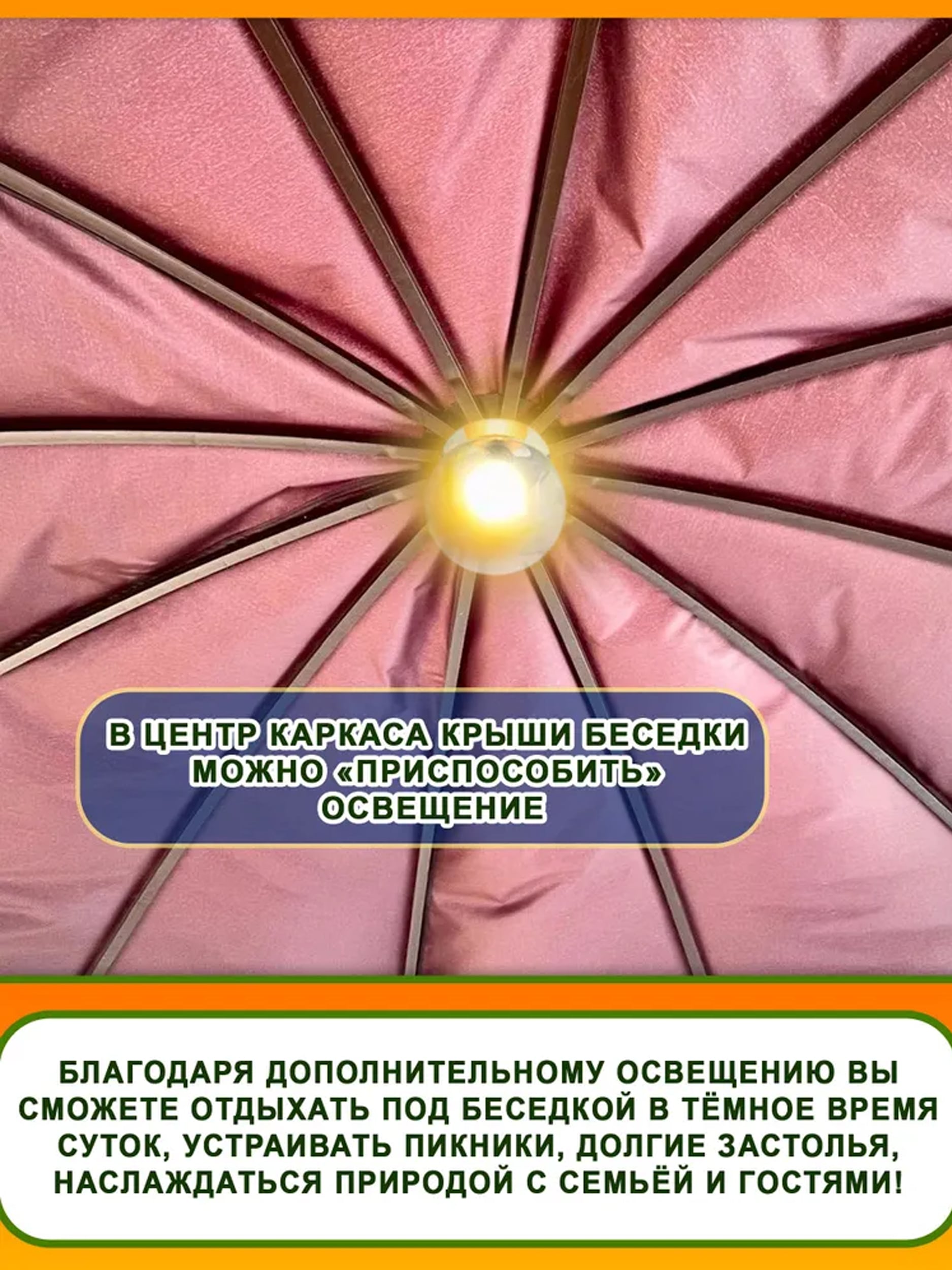 Позволит Вам комфортно разместиться внутри и наслаждаться природой вокруг! Станет центральным элементом вашего садового участка!