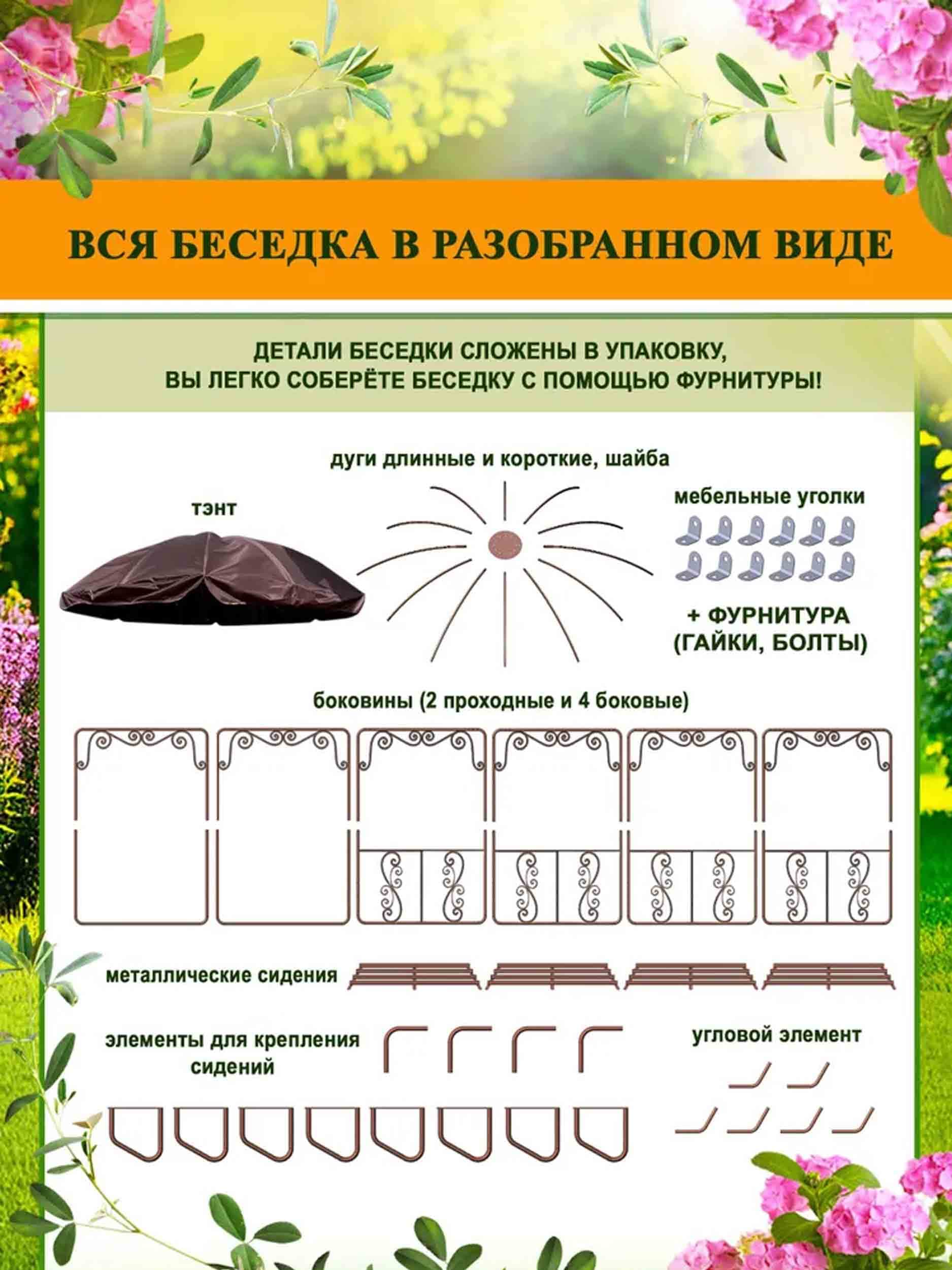 Беседка поставляется в разобранном виде, что облегчает транспортировку.