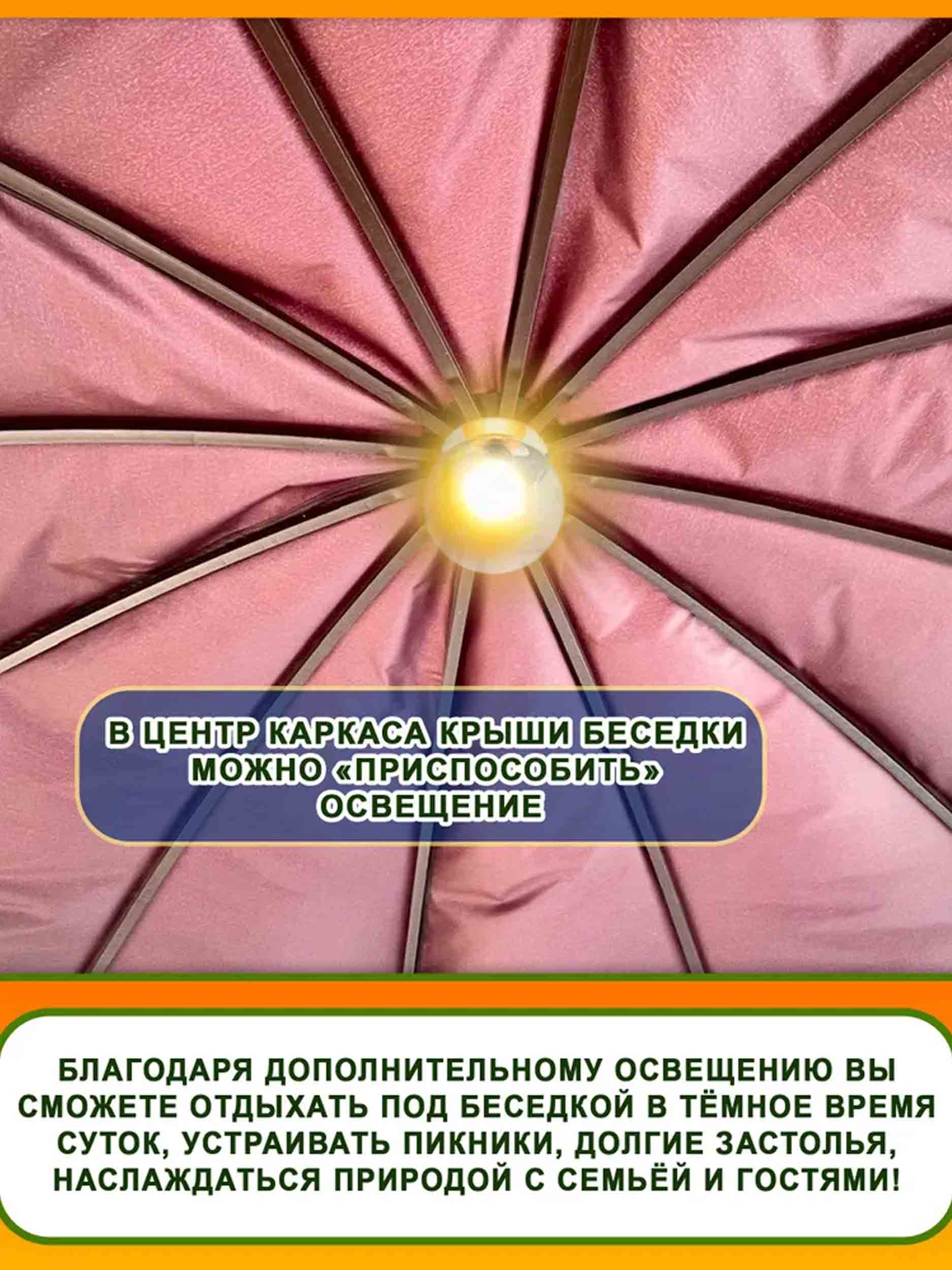 Вы спокойно сможете отдохнуть, устроить утреннее чаепитие или вечернее застолье (при желании беседку самостоятельно можно дополнить освещением).