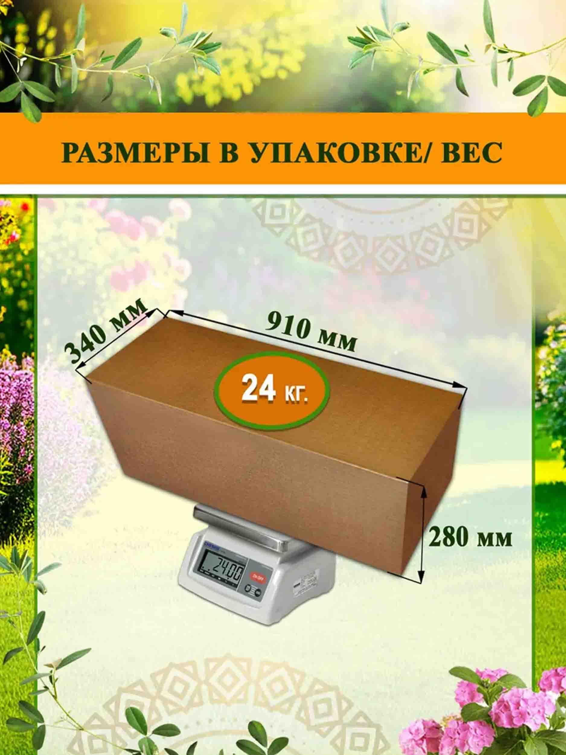Размер упаковки: длина - 910 мм, ширина - 340 мм, высота - 280 мм