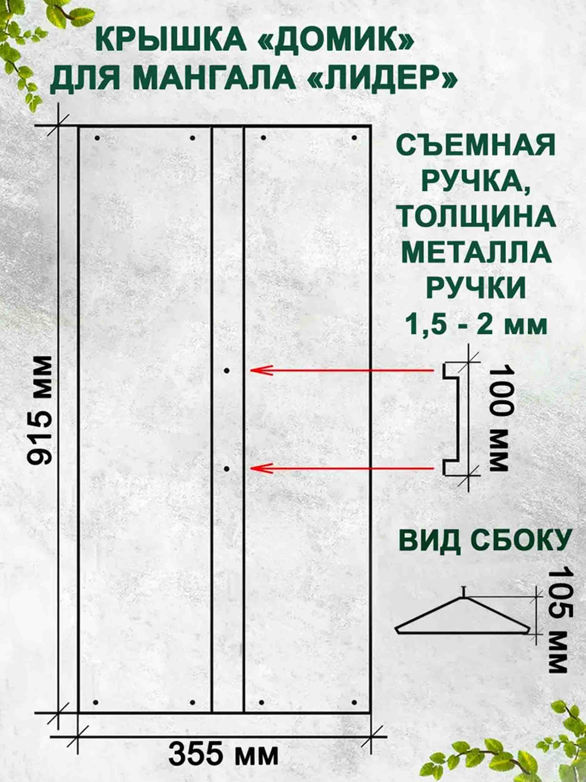 Крышка ДОМИК будет защищать мангальный короб во время дождя, снега, при сильной влажности на улице, от падения мусора и листвы с деревьев.
