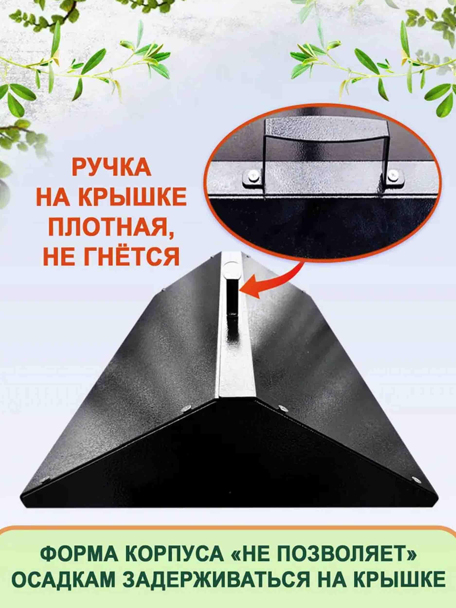 Благодаря своей форме корпуса домиком - снег и прочие осадки меньше будут скапливаться на поверхности крышки.