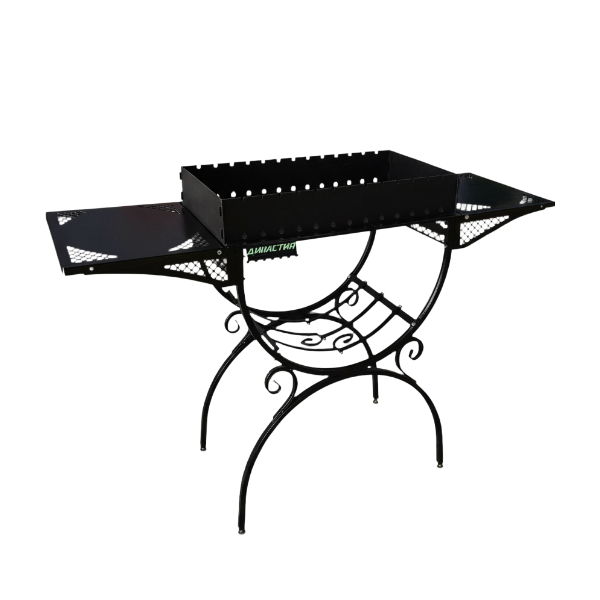 Мангал оснащен боковыми столиками, где вы можете разместить все необходимое для приготовления пищи.