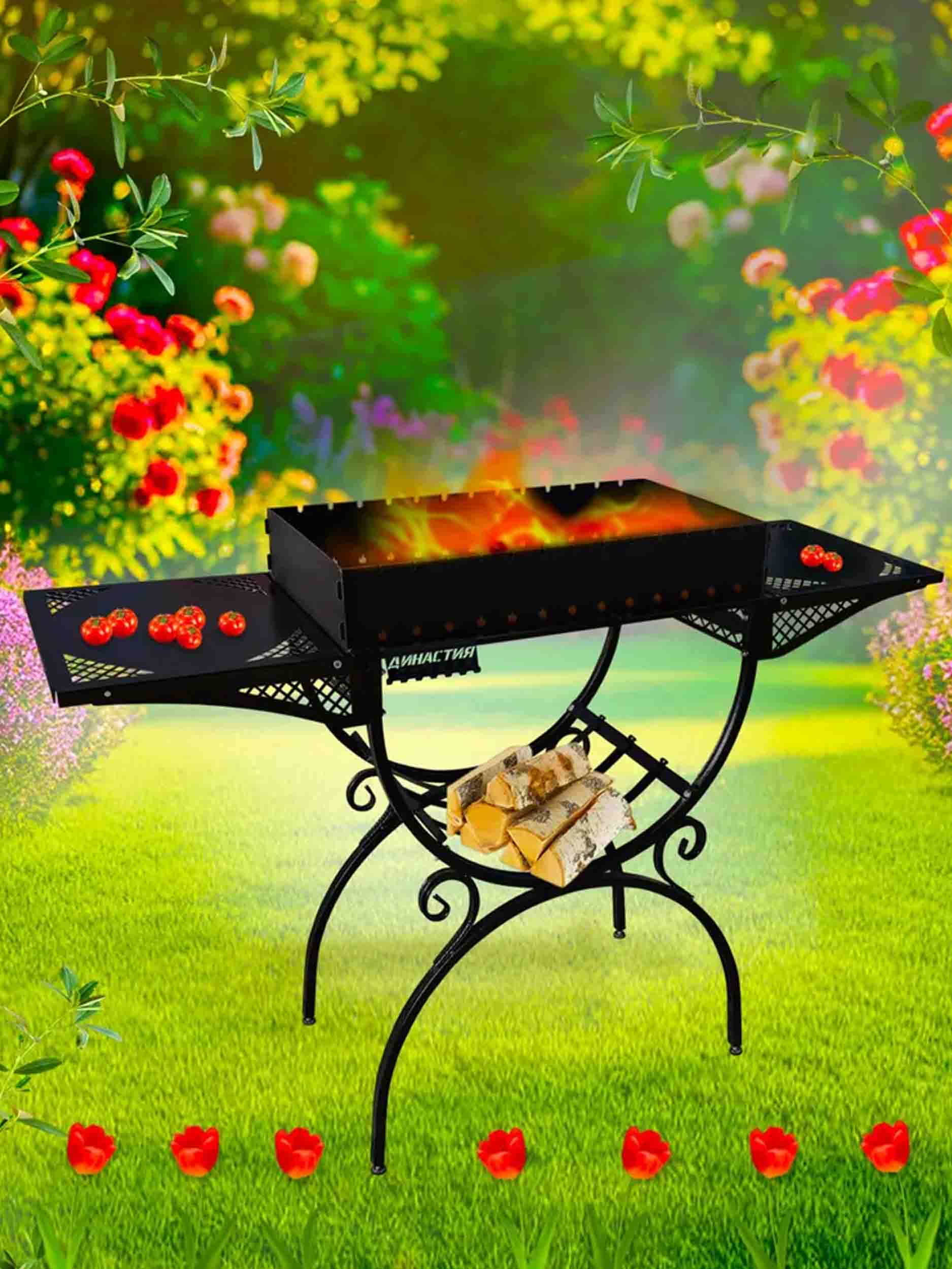 Кроме того, он имеет дровницу, которая позволит вам легко добавлять дрова во время приготовления шашлыков.