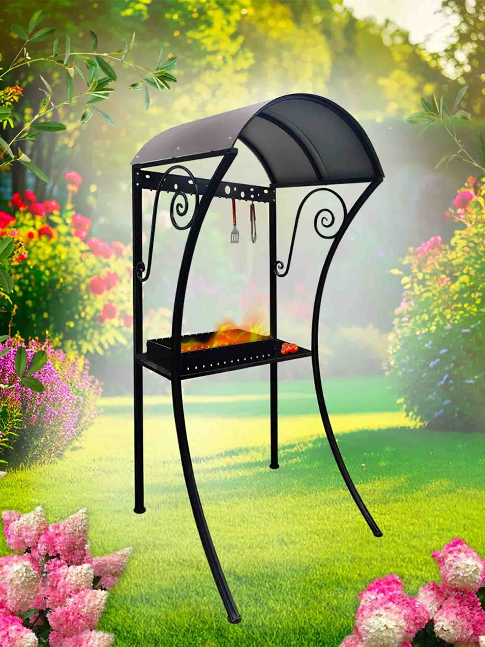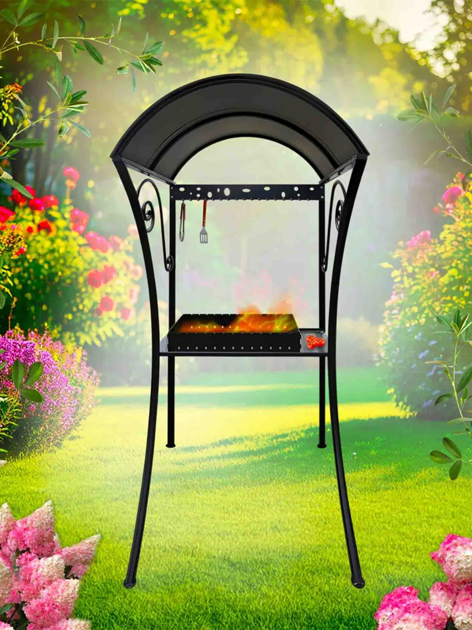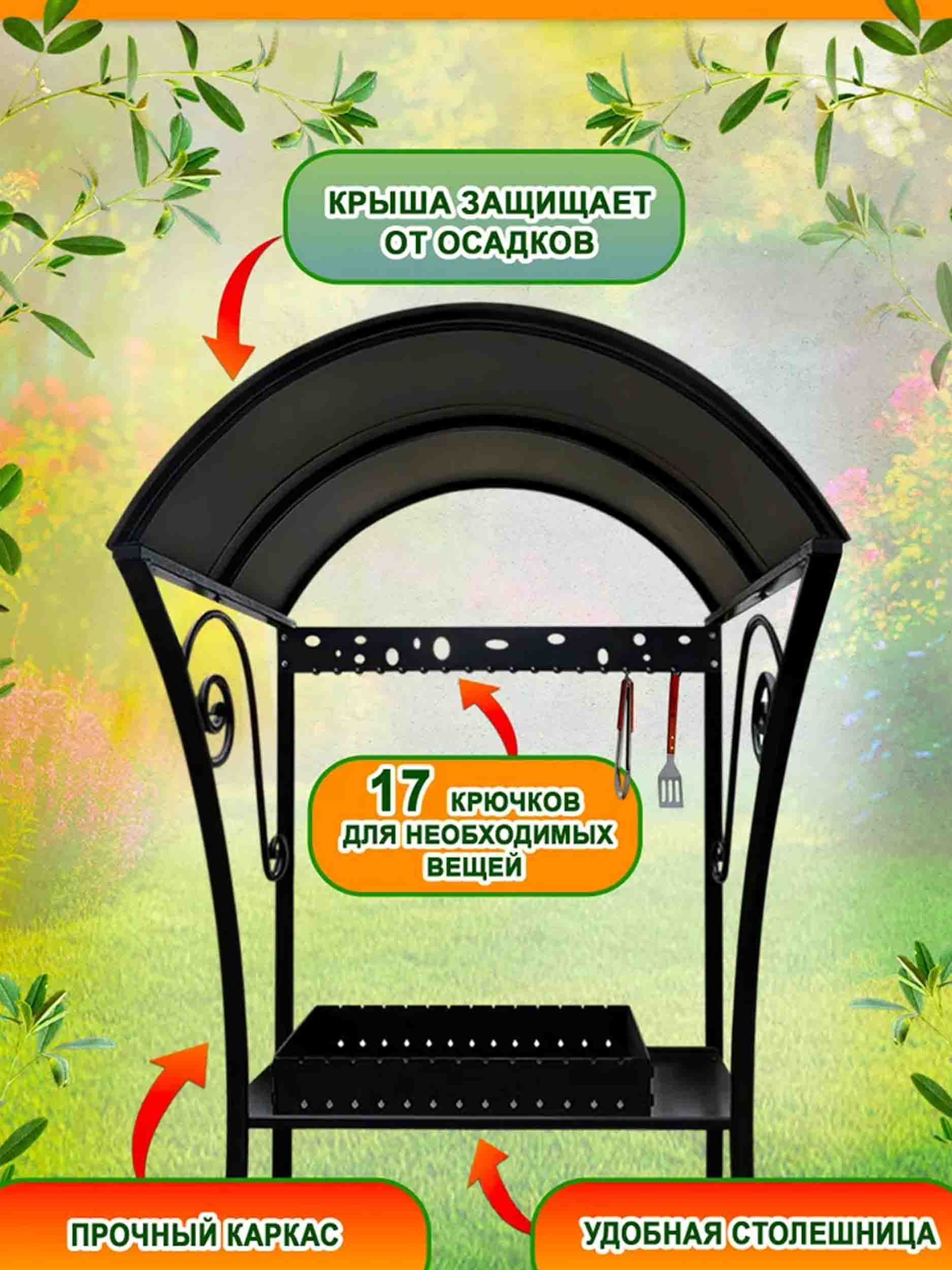 Мангал оснащен крышей, которая защитит от непогоды и позволит Вам готовить пищу даже в самые холодные дни!