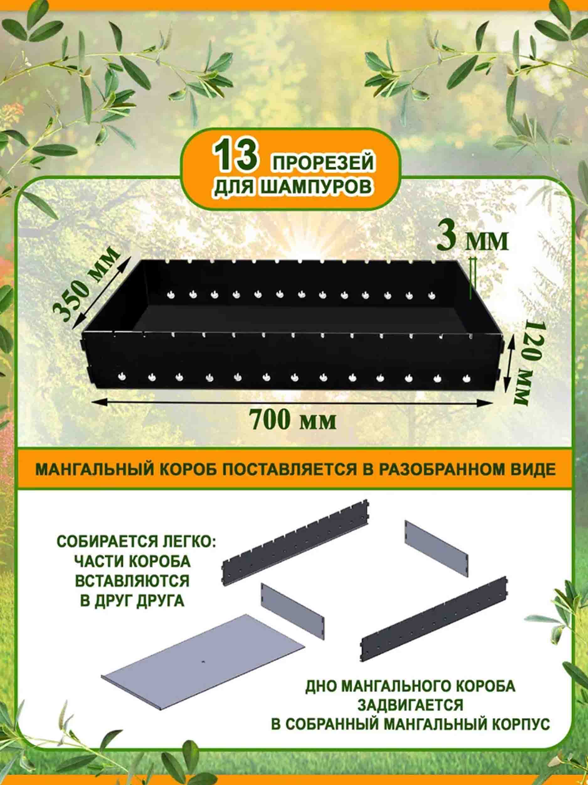 Этот мангал изготовлен из высококачественного металла, что обеспечивает его долговечность и прочность.
