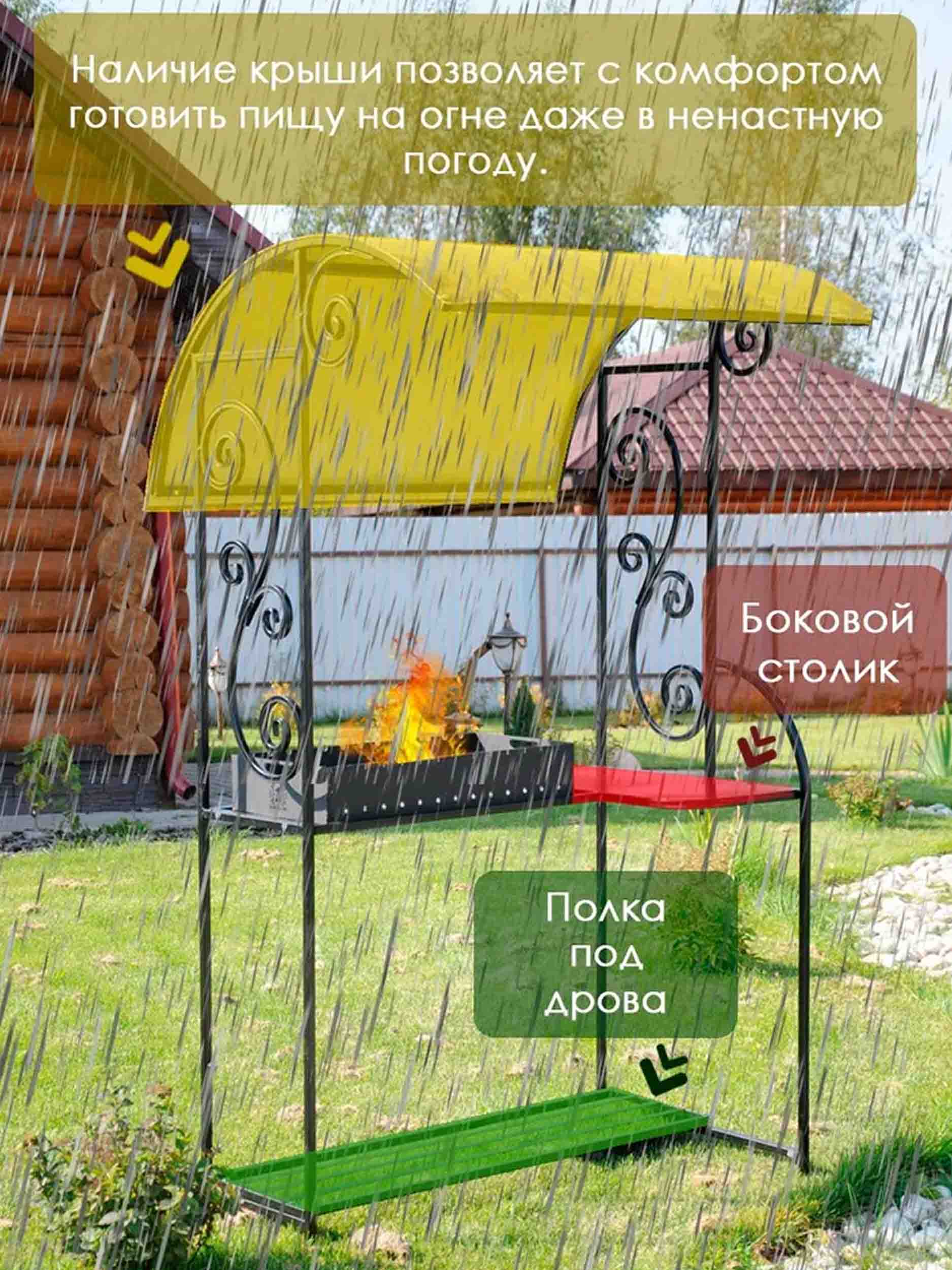 Этот мангал изготовлен из высококачественного металла, что обеспечивает его долговечность и прочность. Мангал имеет крышу, которая защитит вас от дождя или солнца во время приготовления шашлыков. Мангал СМАК также оснащен боковым столиком, где вы можете разместить все необходимое для приготовления пищи. Кроме того, он имеет дровницу, которая позволит вам легко добавлять дрова во время приготовления шашлыков.