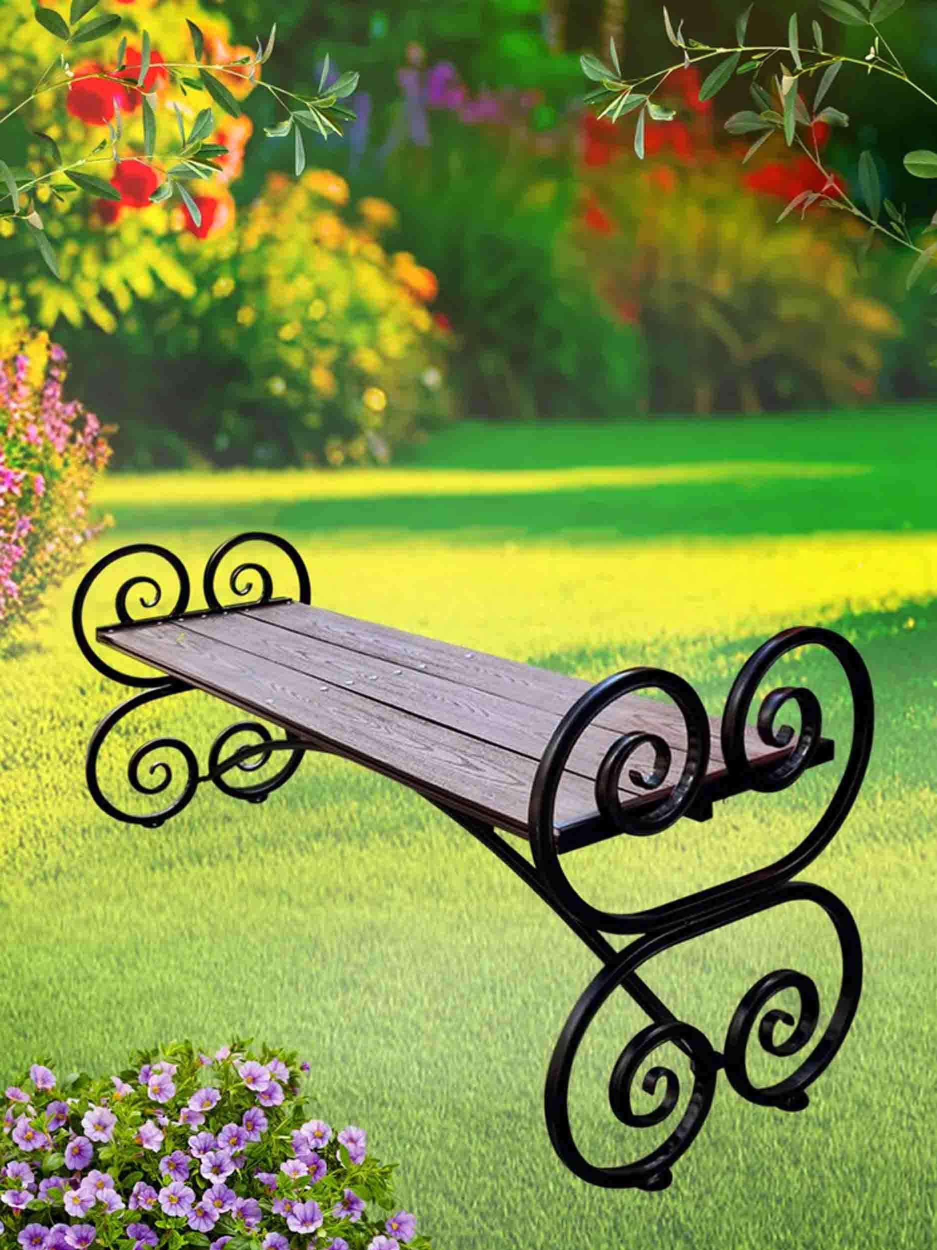 Эта лавка изготовлена из металла и имеет прочное сиденье из ДПК (Древесно-полимерного композита), которое обеспечивает комфортное положение тела при длительном пребывании на ней.