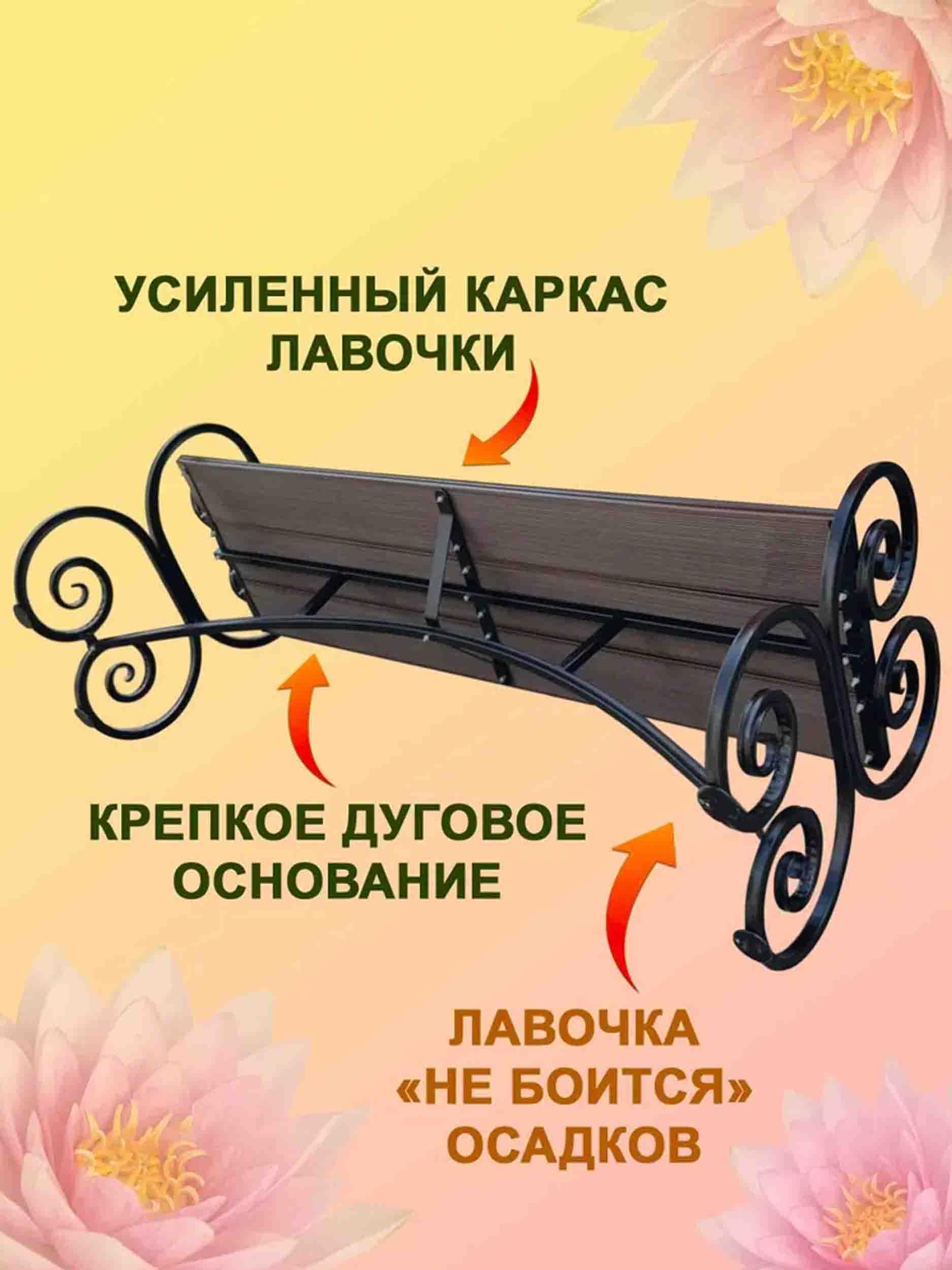 Каркас скамейки окрашен порошковой краской, что обеспечивает высокую антикоррозийную стойкость каркаса и надолго сохранит внешний вид изделия. Особенностью лавки является ее прочность и долговечность.Она может выдерживать вес до 250 кг, что делает ее отличным выбором для использования в общественных местах или на открытом воздухе.