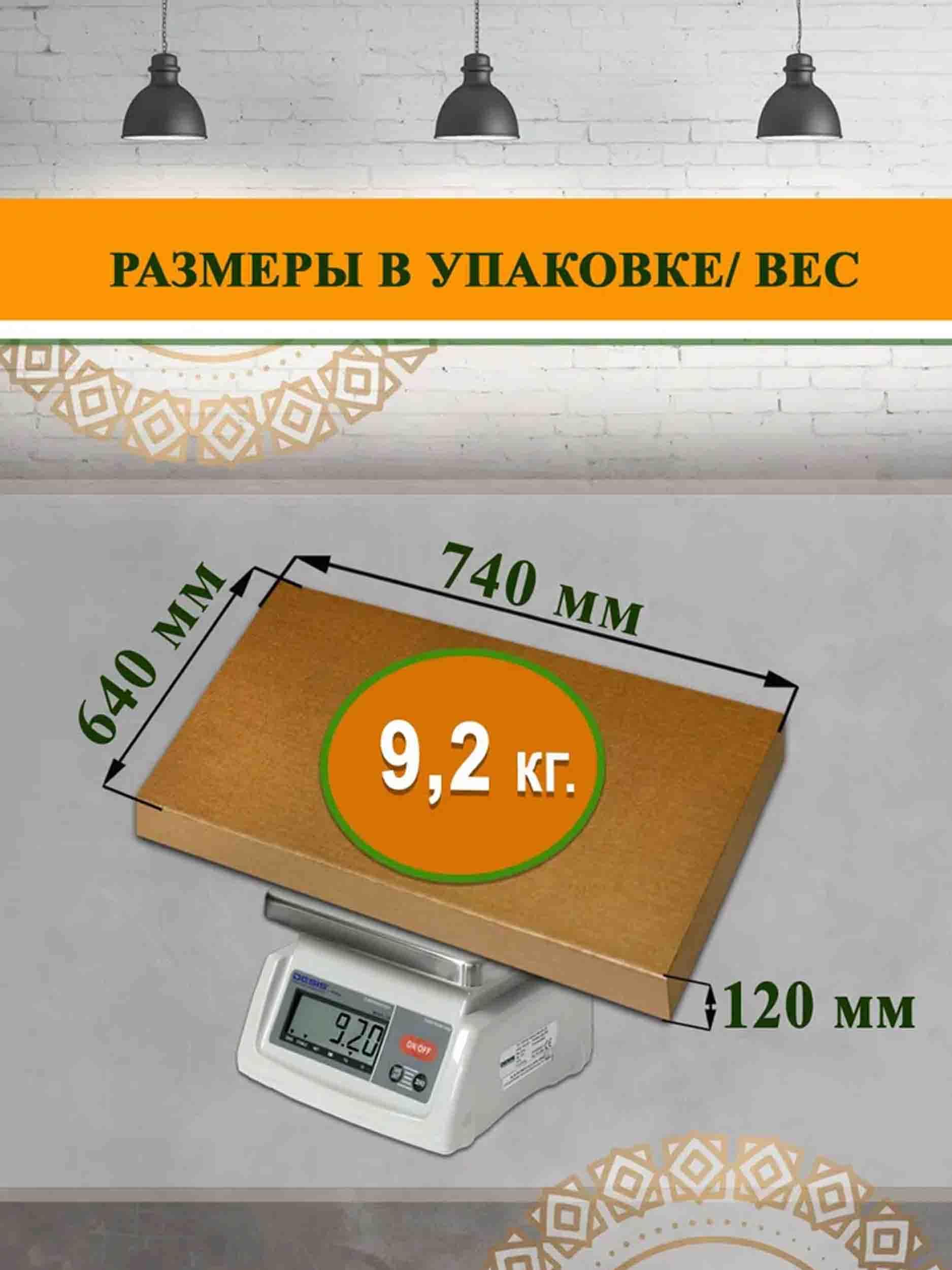 Размер упаковки: длина - 740 мм, ширина - 640 мм, высота - 120 мм