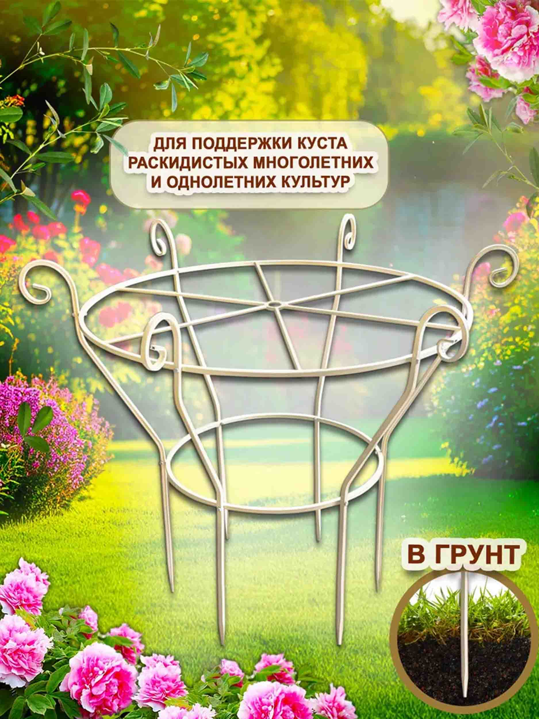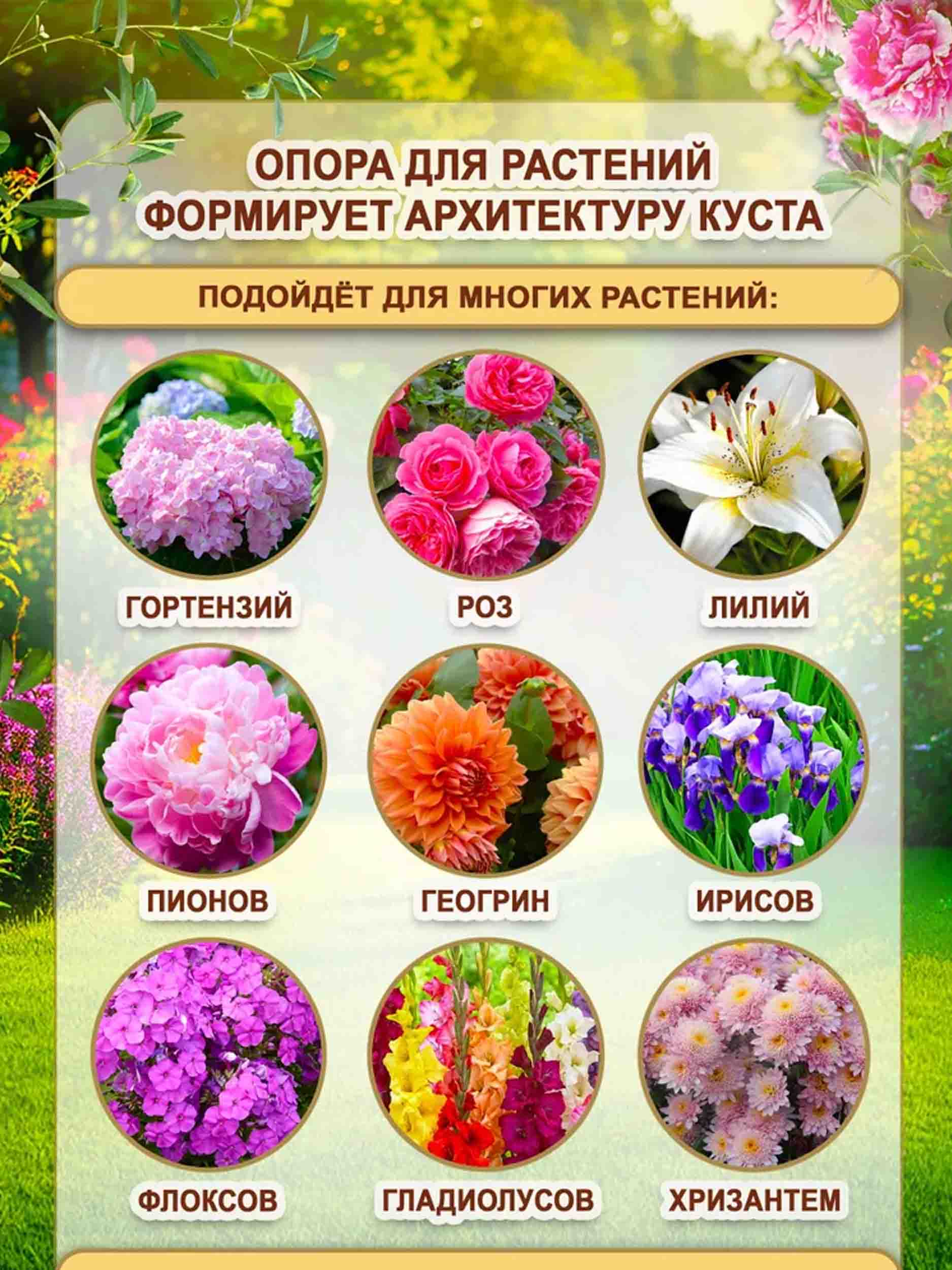 Подойдет для поддержки раскидистых многолетних и однолетних культур: