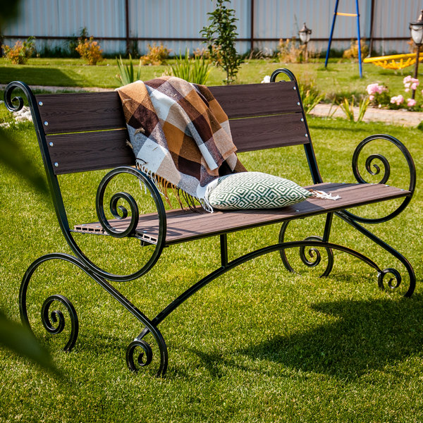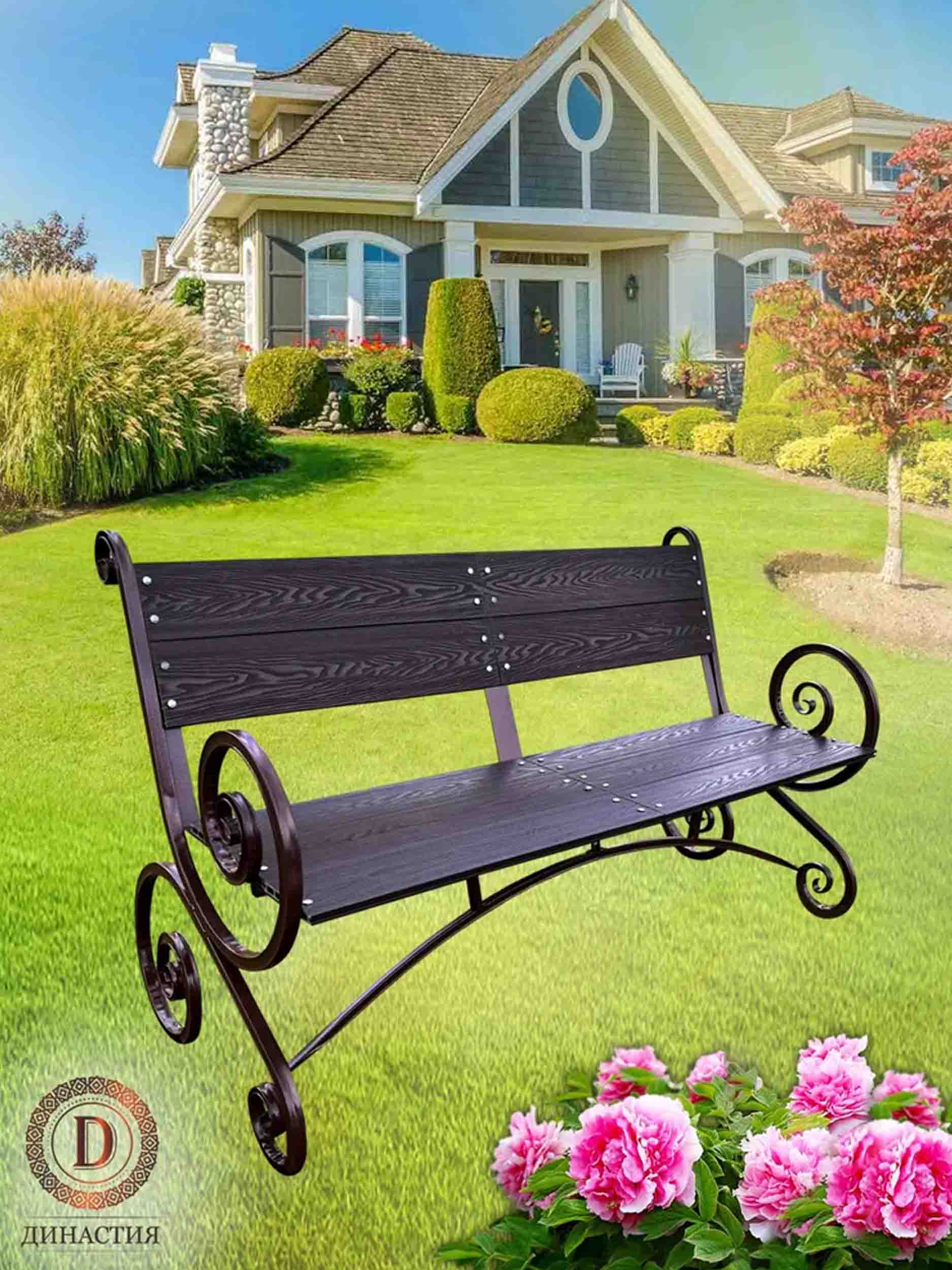 Эта скамья изготовлена из металла и имеет прочное сиденье из ДПК (Древесно-полимерного композита), которое обеспечивает комфортное положение тела при длительном пребывании на ней.