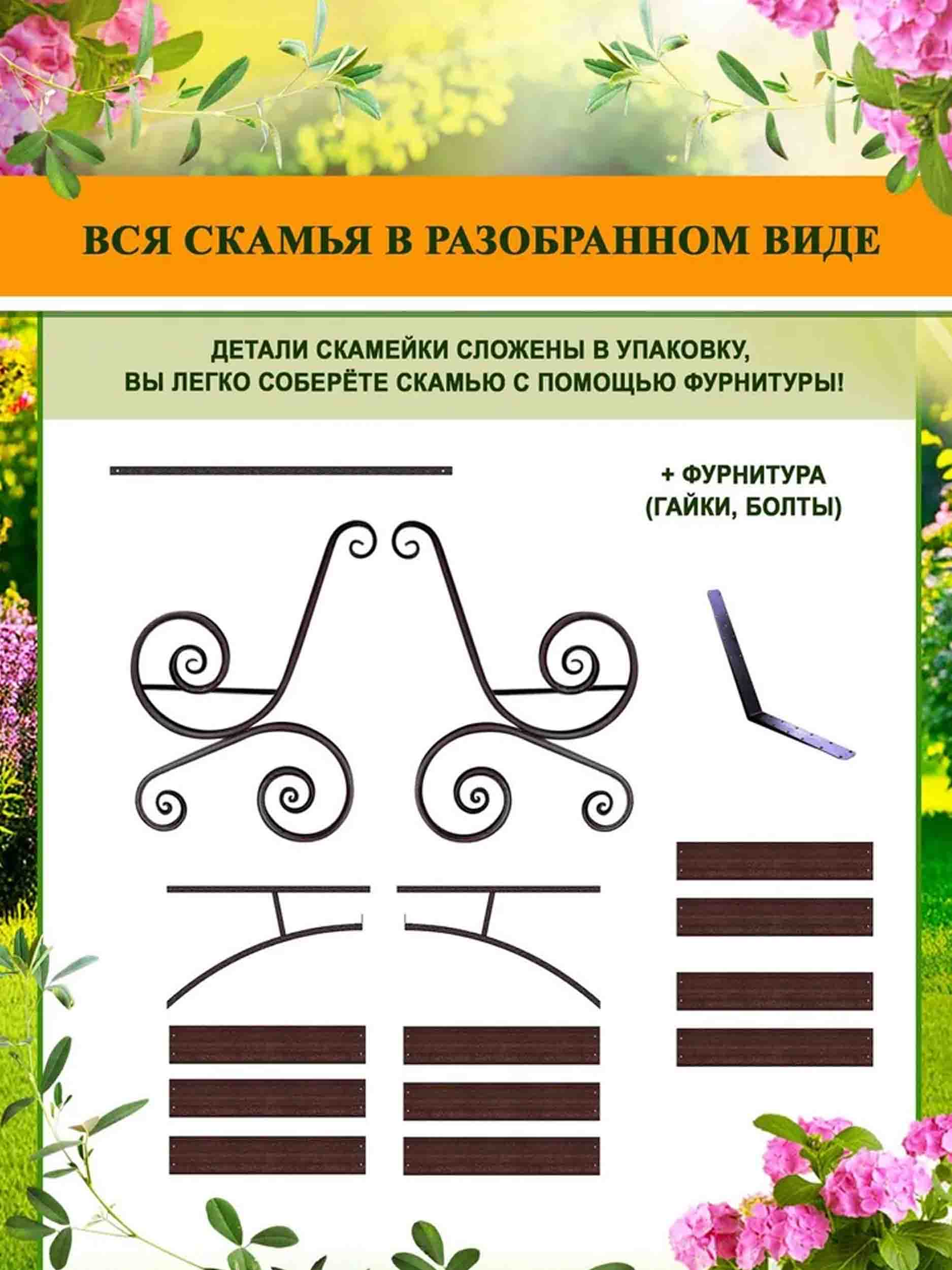 Используйте скамью, как место для отдыха на открытом воздухе. Скамья поставляется в разобранном виде. Сборка скамьи не займет много времени и сил, так как мы предусмотрели все необходимые элементы для легкой сборки.