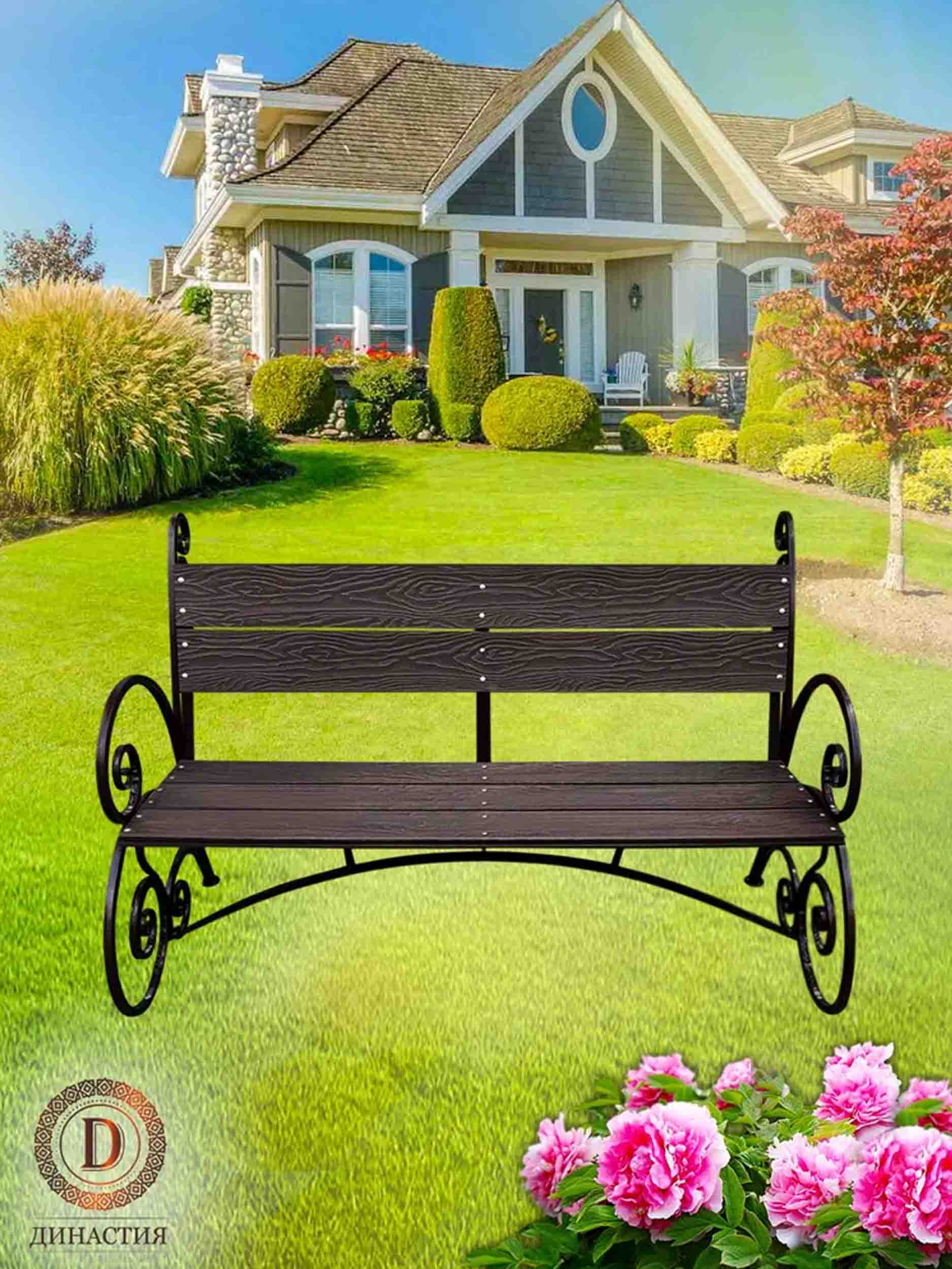 Эта скамья изготовлена из металла и имеет прочное сиденье из ДПК (Древесно-полимерного композита), которое обеспечивает комфортное положение тела при длительном пребывании на ней. Материал сидений долговечен, устойчив к осадкам и не требует специального ухода.